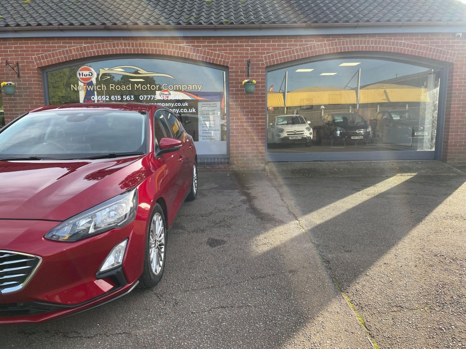 RED 2019 2L FORD FOCUS TITANIUM X ECOBLUE AUTO 5 DOOR HATCHBACK DIESEL.Fantastic example of the Titanium X Auto, one owner low mileage full Ford service history. Very well looked after vehicle with top specifications to name a few part leather, heated seats, satellite navigation, front and rear parking censors/parking aid, cruise control, air conditioning, heated front windscreen, hands-free phone, electric drivers seat & electric windows. Stunning vehicle looks great drives well top speed of 129 mph 147 bhp plenty of power and very good fuel economy. Providing a good driving experience rear folding seats for a large loading area. Norwich Road motor Company Ltd, based in North Norfolk. Trading as an independent company for many years, providing a high standard of vehicles. All vehicles are low millage sold with a 12 month mot, up to date service history. Vehicles go through a multi point service plan providing peace of mind knowing the vehicle is safe to be driven. We Provide a free 6 month comprehensive warranty policy from the well recognised customer protect group. Also 12 months free Home start recovery, roadside assistance policy. We are pleased to offer finance and are more than happy to assist with this process. Please contact Norwich Road Motor Company Ltd to discuss options. Alternatively go to Hawk Stone Motor Finance link on dealer website to calculate payment plan options, search’s won't affect your credit score. Norwich Road Motor Company Ltd are pleased to offer a fair priced part exchange service on your vehicle making the process as easy as possible. Cars are priced checked regularly to provide a fair pricing policy. Please contact us to discuss your motoring needs. We pride ourselves on excellent customer service and after sales. Visit in opening hours for viewing and test drive if possible to avoid any disappointment please email sales@norwichroadmotorcompany.co.uk or call on 01692615563 or mobile 07775463648 We offer video link viewing as well as nationwide delivery service.