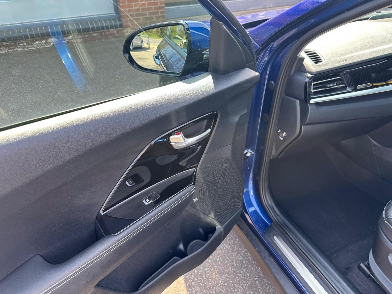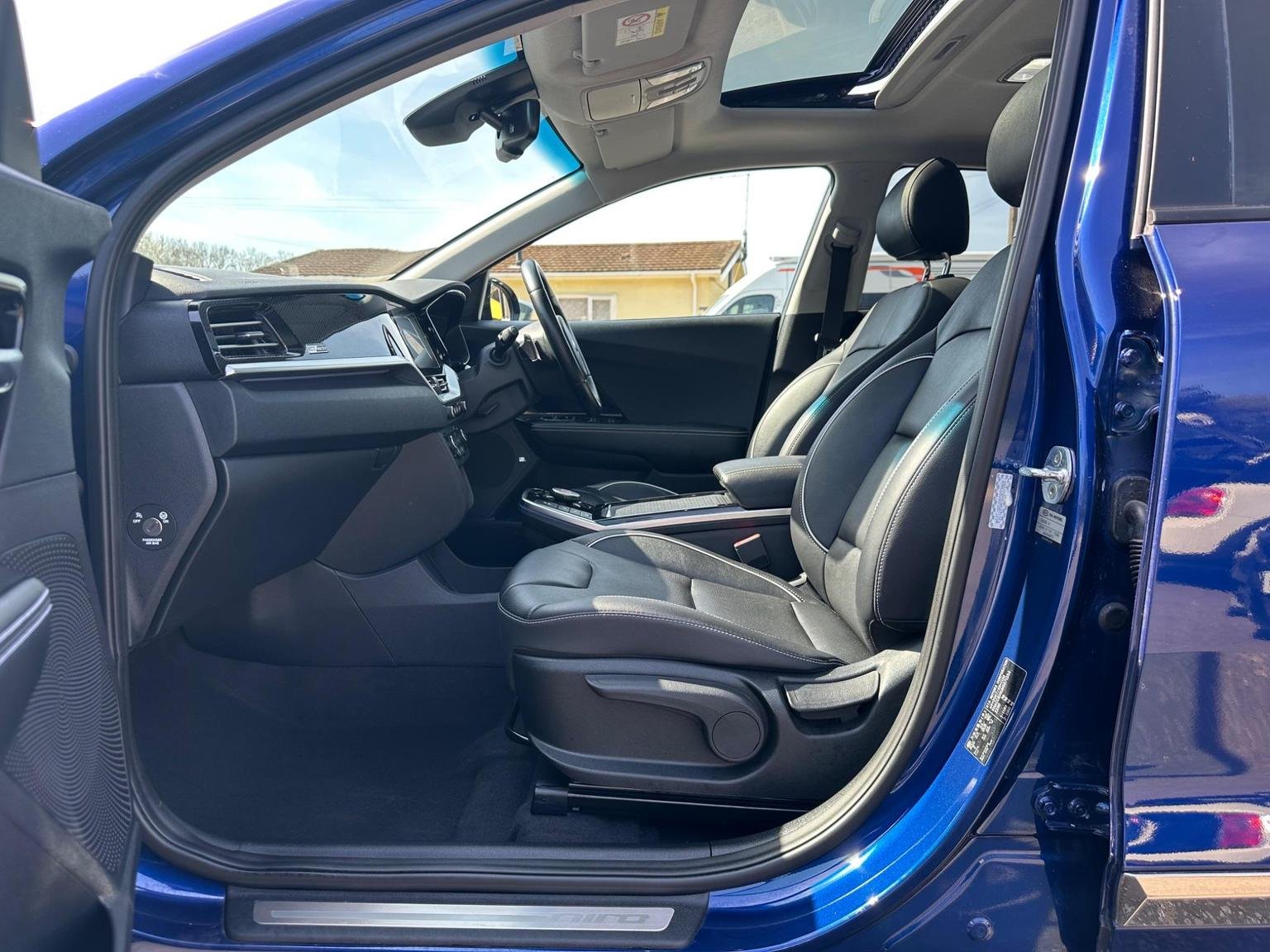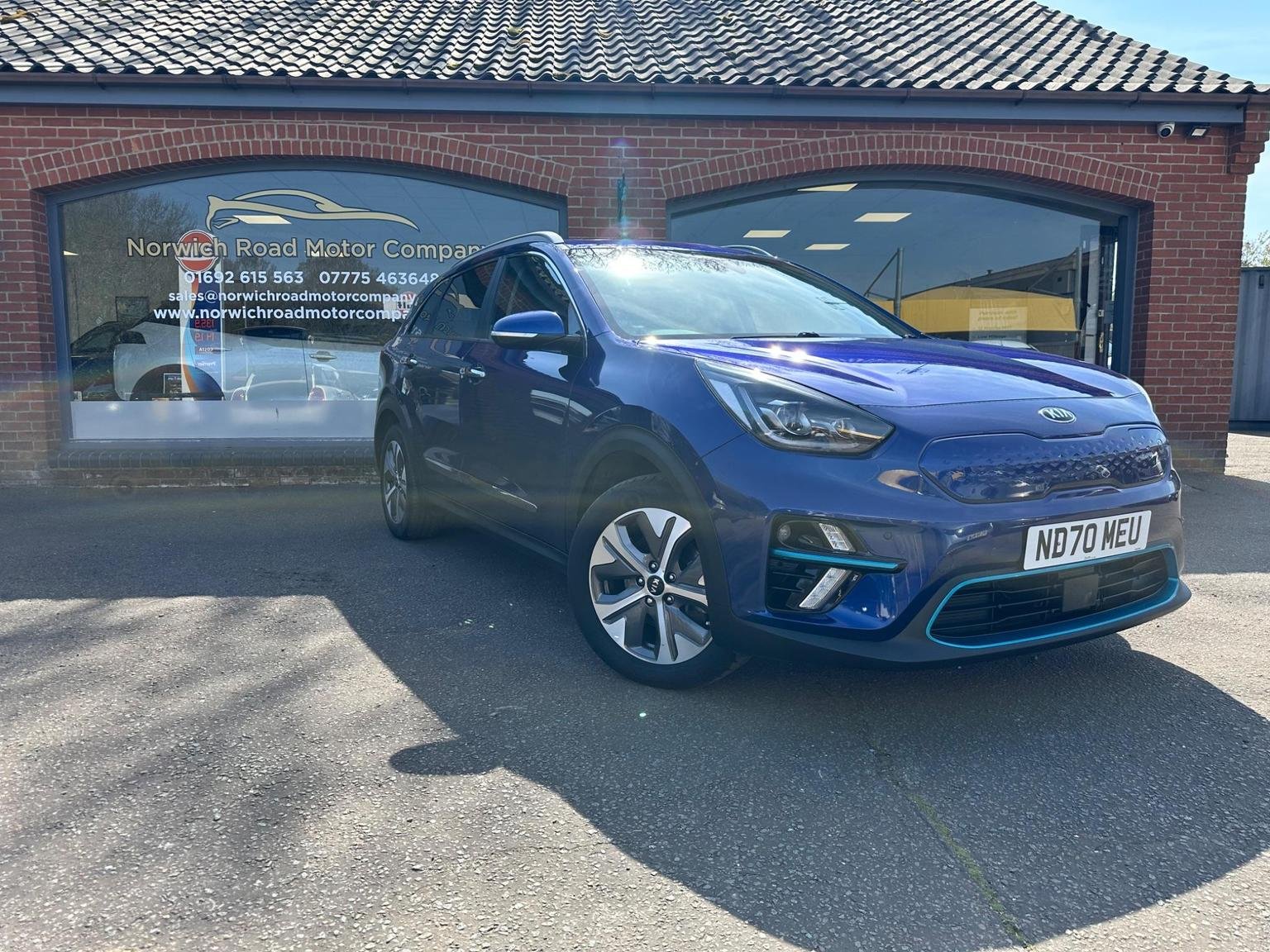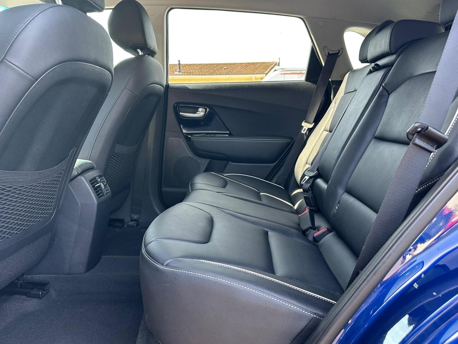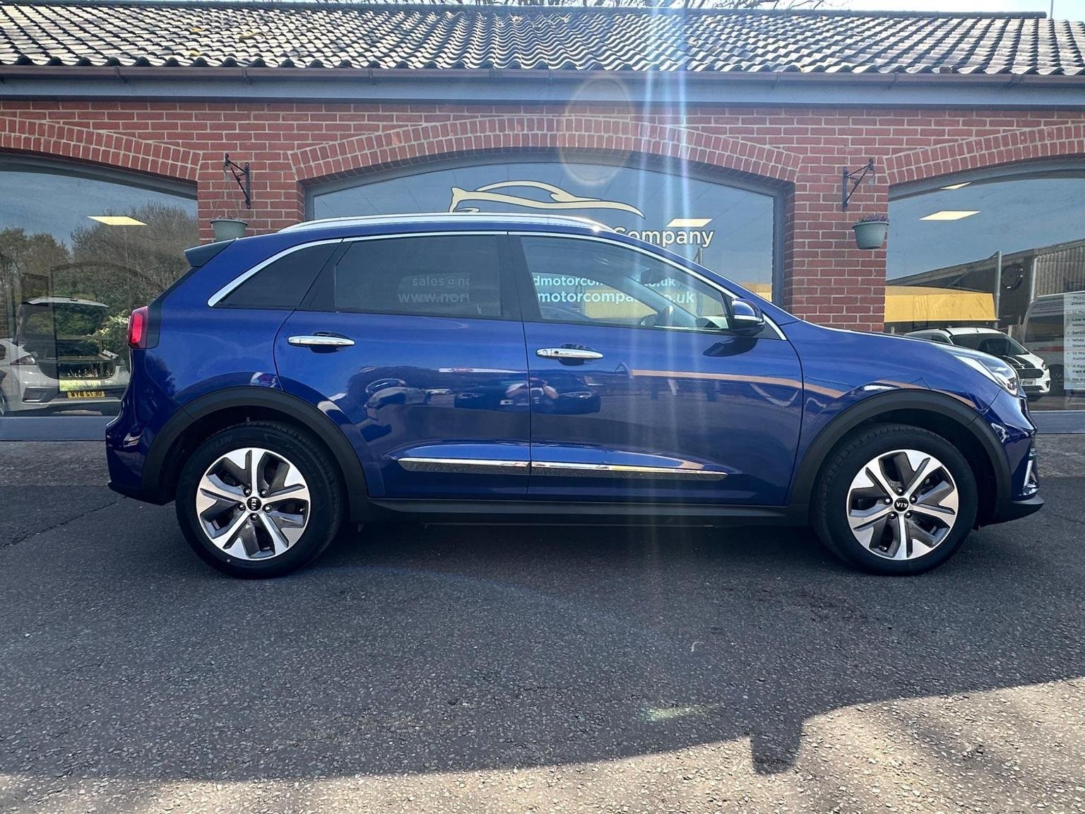 2021 BLUE(DEEP CERULEAN) KIA NIRO 4+EV 64KWH ELECTRIC ESTATE 5 DOOR. A Stunning one owner full service history Kia Niro Long Range ev providing peace of mind delivering a 288 mile range making them long journeys a pleasure whilst ULES compliant-congestion compliant for a worry free inner city driving. The Kia benefits having 2 years 10 months remaining manufacturers warranty this includes the ev battery or up to 100000 miles. This Kia looks good on the road and has a lot to offer with deep cerulean coloured exterior, colour coded bumpers/wing mirrors, front-rear parking sensors, diamondcut alloys, sun roof, front tinted glass with rear privacy glass adding to an already great look with plenty of nice chrome touches. The spacious interior has a great look and fill with a good driving position, drives well with plenty of power. This car has a high specification to name a few full leather with white stitching front seats heated/cooled(a rare good feature) heated steering wheel, park assist, driving modes eco-normal-sport, easy to use in car entertainment system, android auto/Apple CarPlay, front/rear electric windows, folding wing mirrors, front rear parking aid, rear assist camera, multifunctional steering wheel, hands-free phone, Aircon, multimedia, cruise control-speed limiter, lane safety, driver attention warning, satellite navigation, climate control, trip tonic EV gear change. Please look at full specification listed to fully appreciate. Large boot with rear folding seats allowing a large loading area. Norwich Road motor Company Ltd, based in North Norfolk. Trading as an independent company for many years, providing a high standard of vehicles. All vehicles are low millage sold with a 12 month mot, up to date service history. Vehicles go through a multi point service plan providing peace of mind knowing the vehicle is safe to be driven. We are pleased to offer finance and are more than happy to assist with this process. We are pleased to offer a fair priced part exchange service on your vehicle making the process as easy as possible.