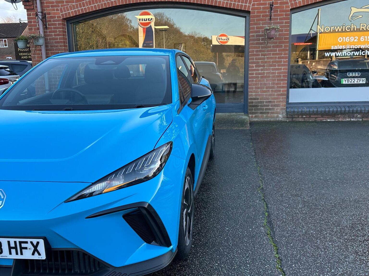 The MG4 SE stands out with its generous boot space, providing ample room for your luggage or shopping. Its very low mileage of 10700 miles indicates it has been lightly used, suggesting a well maintained vehicle compared to others of its age. The inclusion of advanced features like adaptive cruise control and seamless smartphone connectivity further enhances its appeal, making it a practical and enjoyable choice for everyday driving.