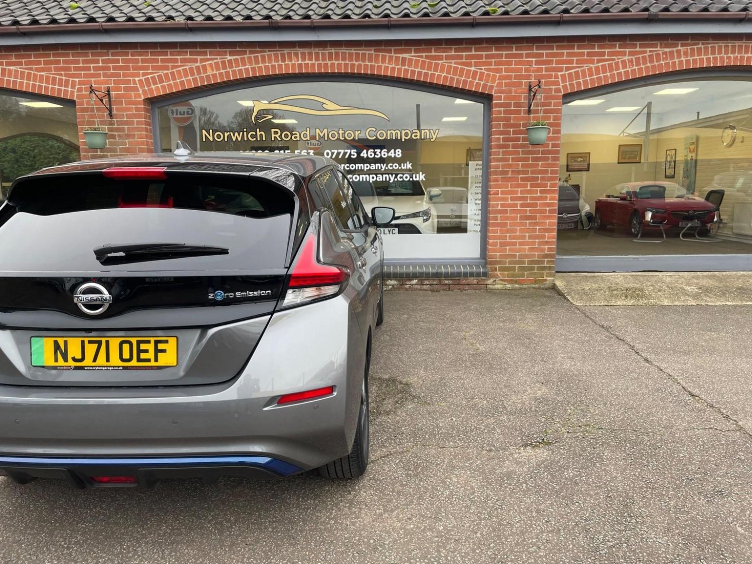 2021 GREY NISSAN LEAF E + N-CONNECTA 160 5 DOOR HATCHBACK. A one owner Nissan Leaf with Full Main Dealer Service History. Battery check at last service 17/12/24 at Nissan shows 100% remaining. The battery has a warranty from Nissan for 8 years or 100000 miles which ever comes first. Low millage vehicle in excellent condition inside and out as expected for the year. Comes with a fast charge cable and an over night/home cable-low running cost(230 mile range fully charged), zero tax a year-zero emissions meaning ULES compliant-congestion compliant for a worry free inner city driving. A very nice car looks good on the road with front tinted glass rear privacy glass front/rear parking sensors, five spoke diamond cut alloys with front accessible charge point. The inside is in excellent condition with half leather interior good driving position with plenty of space multifunctional steering wheel, controlling cruise control, media with hands-free. This vehicle comes with the heat pack front rear heated seats heated steering wheel with satellite navigation front rear parking aid as well as 360% camera-rear reversing camera. To fully appreciate please look at specification list. Good loading area with rear folding seats. Norwich Road motor Company Ltd, based in North Norfolk. Trading as an independent company for many years, providing a high standard of vehicles. All vehicles are low millage sold with a 12 month mot, up to date service history. Vehicles go through a multi point service plan providing peace of mind knowing the vehicle is safe to be driven. We Provide a free 6 month level four warranty policy from the well recognised customer protect group. Also 12 months free Home start recovery, roadside assistance policy. We are pleased to offer finance and are more than happy to assist with this process. Norwich Road Motor Company Ltd are pleased to offer a fair priced part exchange service on your vehicle making the process as easy as possible. Cars are priced checked regularly to provide a fair pricing policy. Please contact us to discuss your motoring needs.