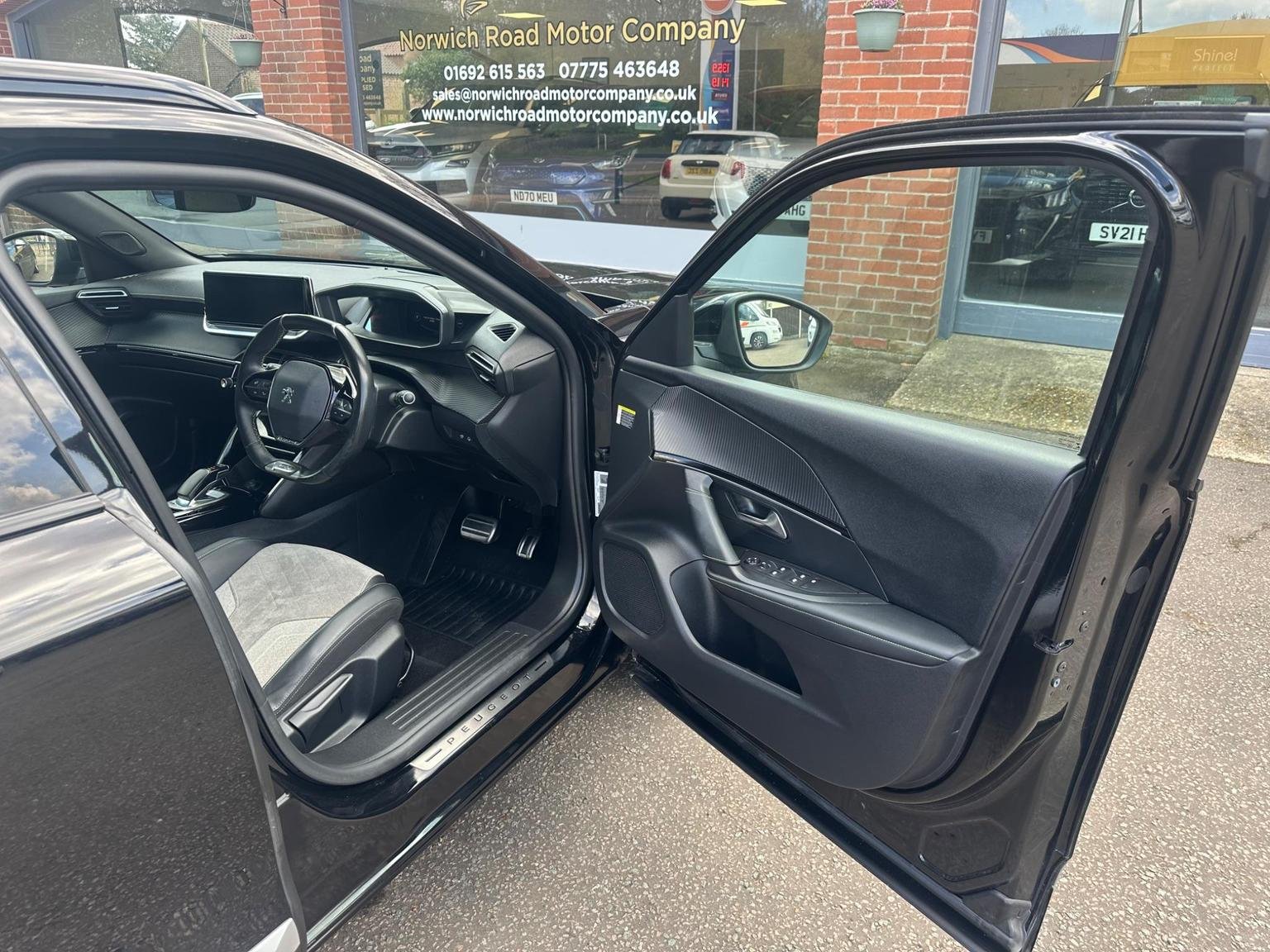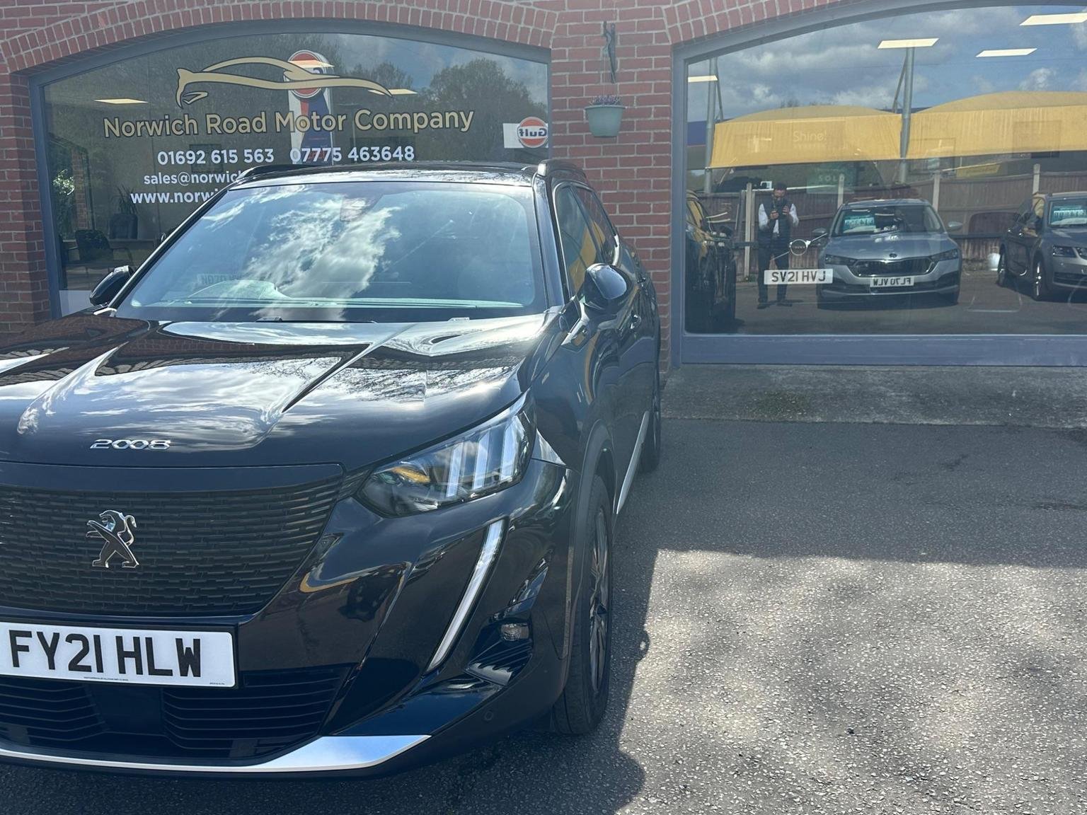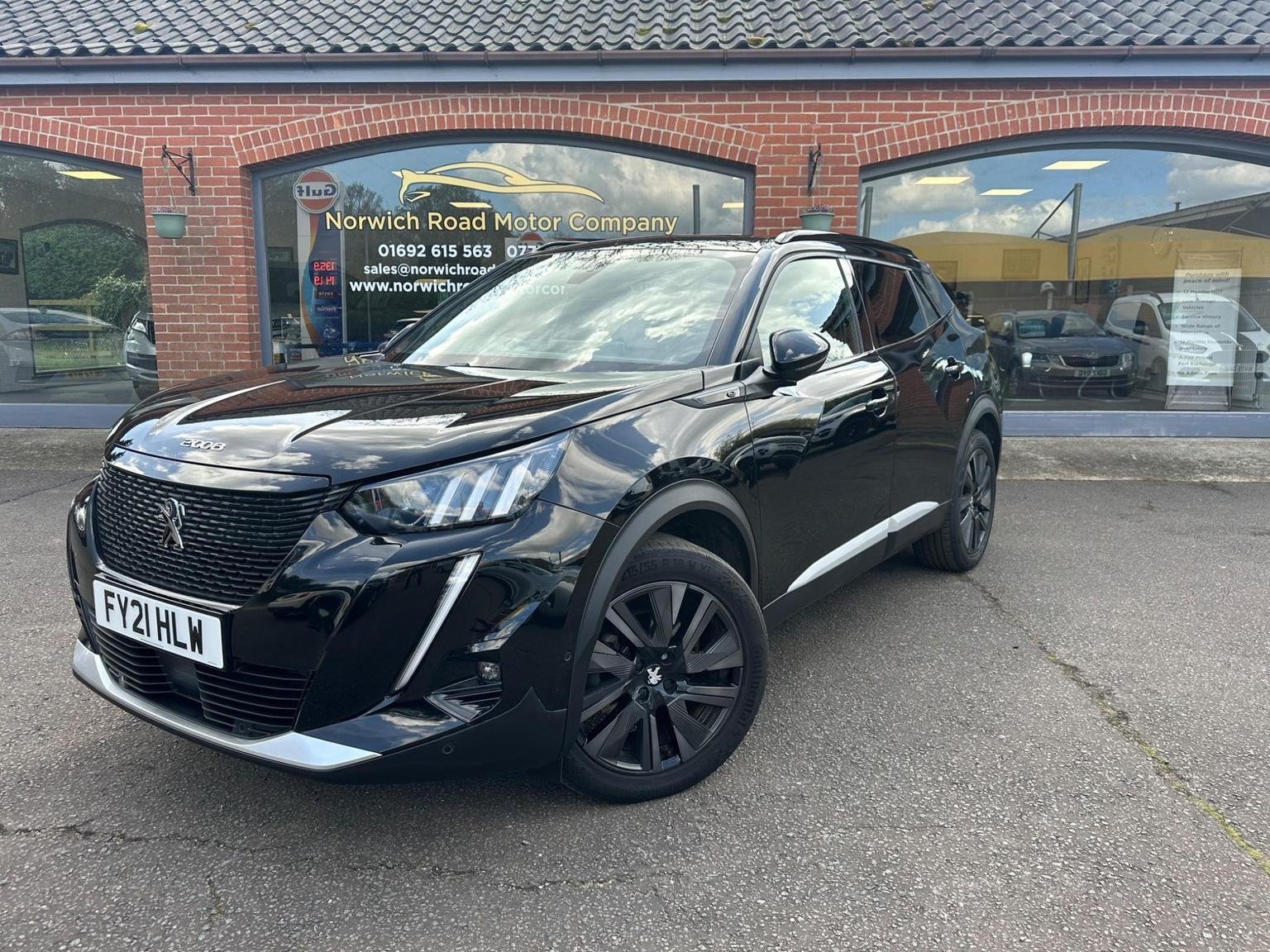 2021 NERA BLACK PEUGEOT 2008 GT PREMIUM 50 KWH EV 5 DOOR HATCHBACK. A very clean example of the much loved Peugeot E 2008 with additional features and trim levels offered by the GT Premium Range. A low millage car with service history providing peace of mind knowing the battery warranty is 8 years or 100000 miles and a range of 206 miles range making them long journeys a pleasure whilst ULES compliant-congestion compliant for a worry free inner city drivingThe Peugeot looks good on the road with plenty of features with colour coded front/rear bumpers-door handles-wing mirrors black inset head lamps with front tinted and rear privacy glass plus five twin spoke alloy wheels adding to an already great look also benefiting from a opening panoramic roof as well as front and rear parking sensors. The interior is in great condition with the GT spec half leather/grey suede interior with green stitching, black roof liner. Door cards, dashboard looks good feels nice with plenty of space and a good driving position. Drives well with a good driving experience. Comes with a great spec to name a few, front rear electric windows, opening panoramic roof, satellite navigation, hands-free phone, phone connect, Aircon, cruise control/speed limiter, heated front seats, multifunctional steering wheel, easy to use in car entertainment system, lane warning, active brake system, smart phone docking and driving modes eco-normal-sport. Please look at full specification listed to fully appreciate. Norwich Road motor Company Ltd, based in North Norfolk. Trading as an independent company for many years, providing a high standard of vehicles. All vehicles are low millage sold with a 12 month mot, up to date service history. Vehicles go through a multi point service plan providing peace of mind knowing the vehicle is safe to be driven. We Provide a free 6 month Level 4 warranty policy from the well recognised customer protect group. Also 12 months free Home start recovery, roadside assistance policy. We are pleased to offer finance and are more than happy to assist with this process.